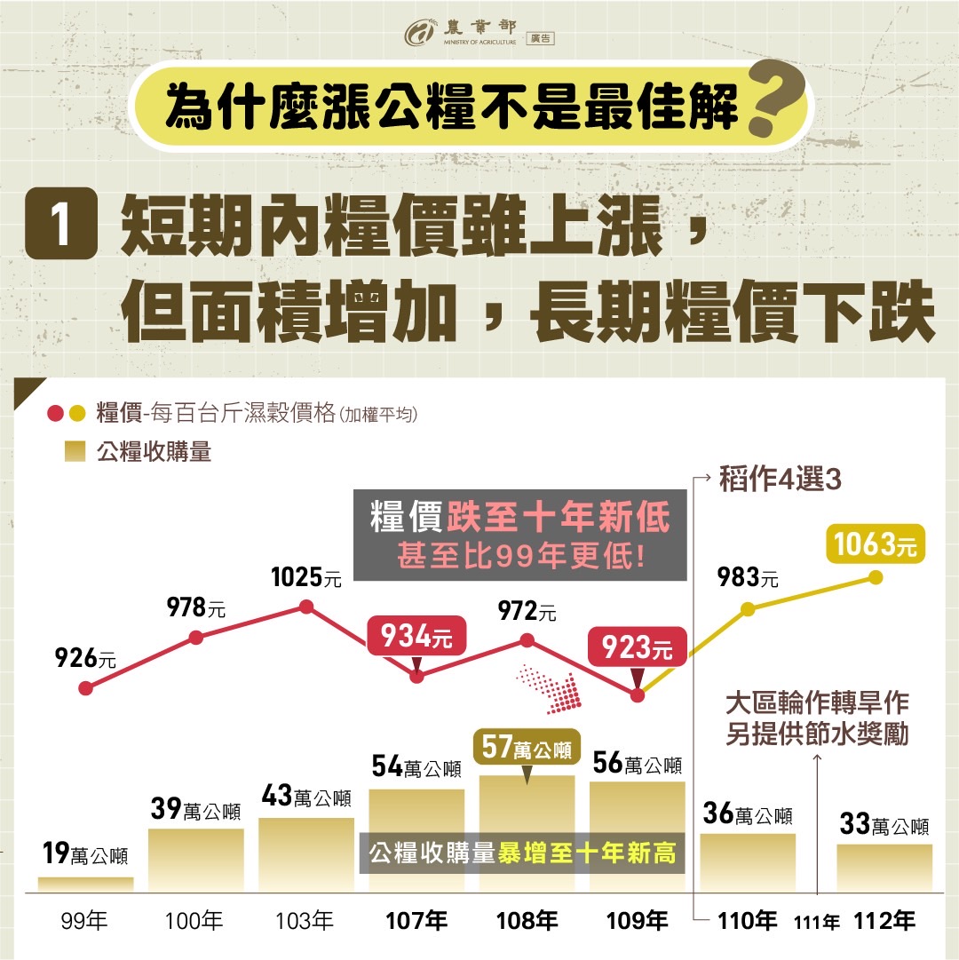 漲公糧不是最佳解方 農業部推出稻米產業精進政策 確保農民收益