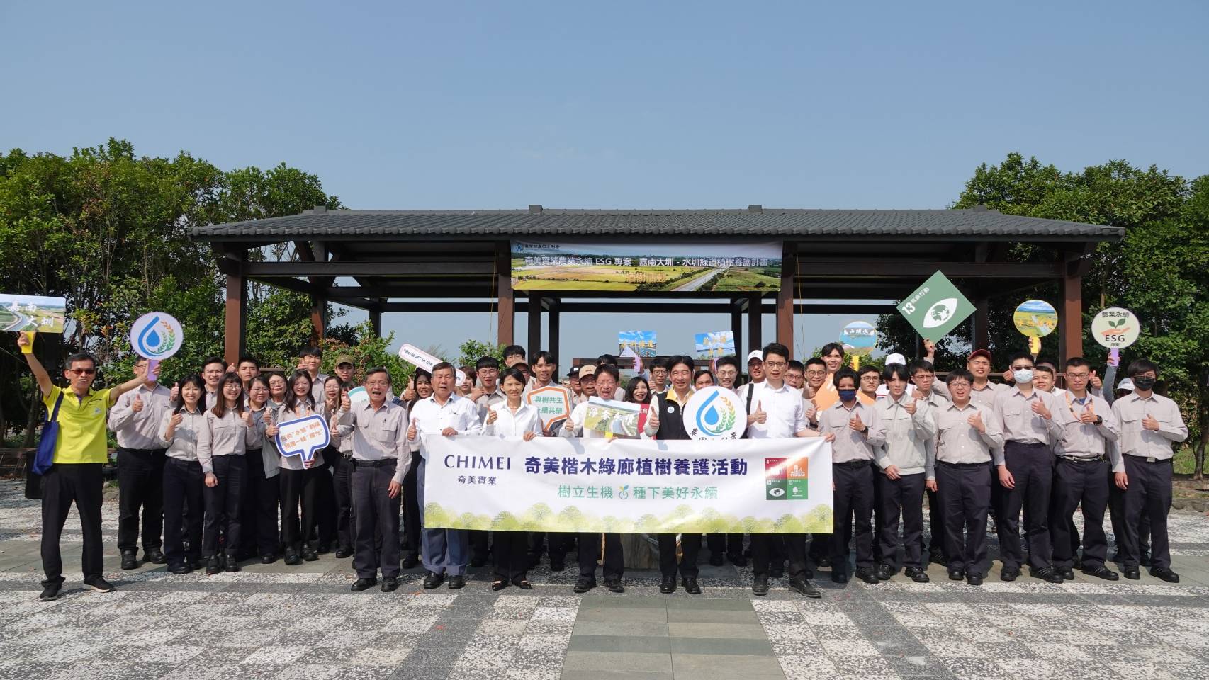 嘉南大圳水圳綠道為農業永續 ESG 場域,奇美實業預計每年捐款新臺幣100萬元認養大圳旁隙地之部分植樹及養護經費。未來5年將持續植樹養護總長度1,100公尺,預計種植超過 500 棵喬木。奇美實業與農田水利署今日協力種樹,亦結合該企業新進同仁教育訓練課程,透過每位新人親手種下樹苗,為百年嘉南大圳沿線新添綠意,營造綠廊維護珍貴農業水資源,公私協力傳承生態永續之意識,期盼各界能響應這個愛鄉護水的植樹活動,共同創造更好的環境,也歡迎全國民眾乃至國外旅客到水圳綠道來騎車、散步,體驗大圳的農業風光景緻。