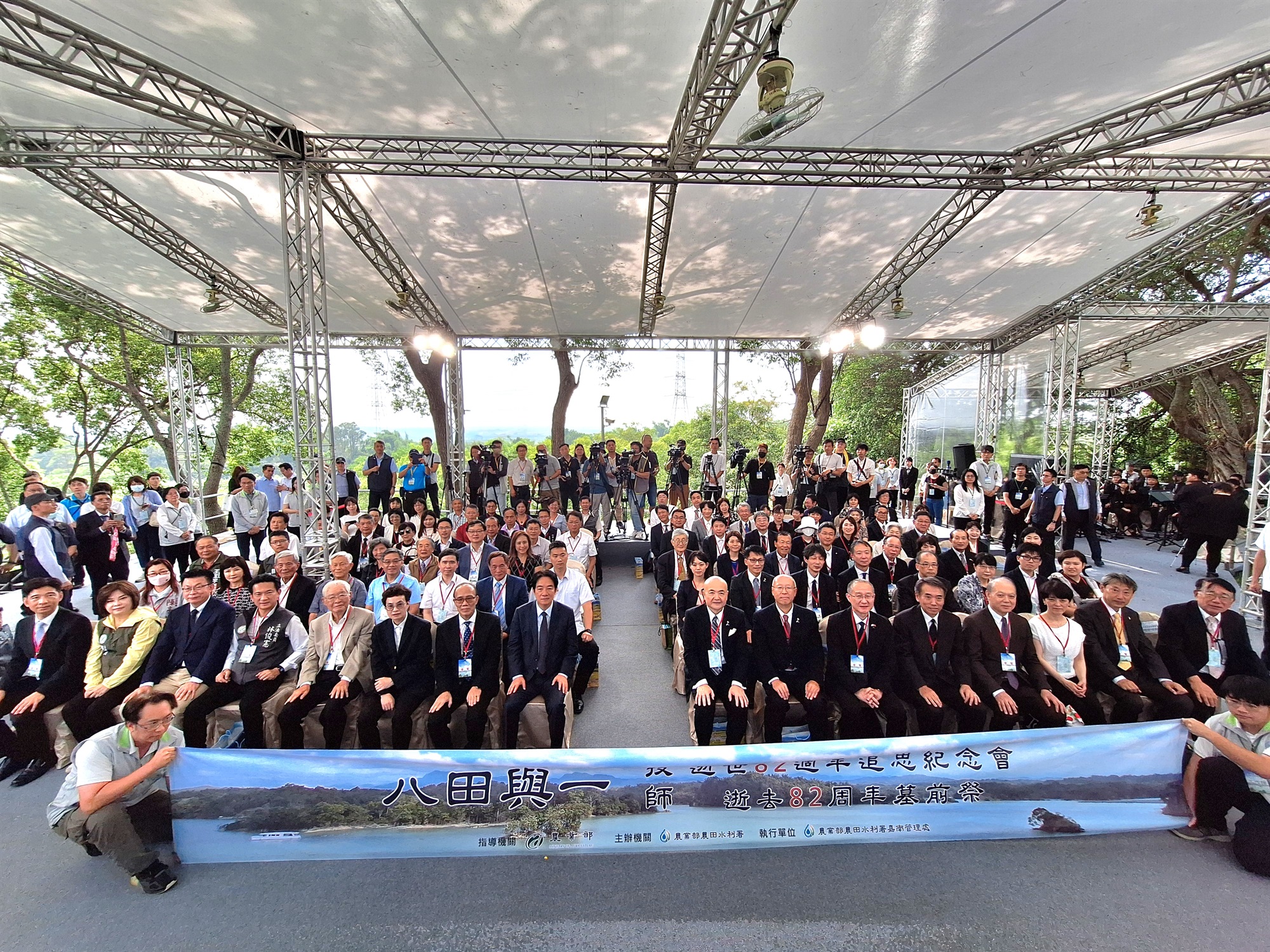 農業部農田水利署今(113年5月8)日於烏山頭水庫舉辦「八田與一技師逝世82週年追思紀念會」,現場與會人士包括副總統賴清德、農業部陳添壽次長、臺南市趙卿惠副市長、立法院林俊憲委員、郭國文委員、賴惠員委員、日台交流協會片山和之代表、金澤市新保博之副市長、八田與一技師遺族八田修一賢伉儷以及農田水利署蔡昇甫署長等近400位嘉賓共同出席,皆感佩八田與一技師100年前興建烏山頭水庫及嘉南大圳時無畏艱難的農水職人精神,並感念嘉南大圳工程完竣通水後,不僅使原本貧脊的雲嘉南平原變成沃野千里的穀倉,提升無數農民的生計,更帶動百年來農業、商業、工業,乃至於科技業的發展。