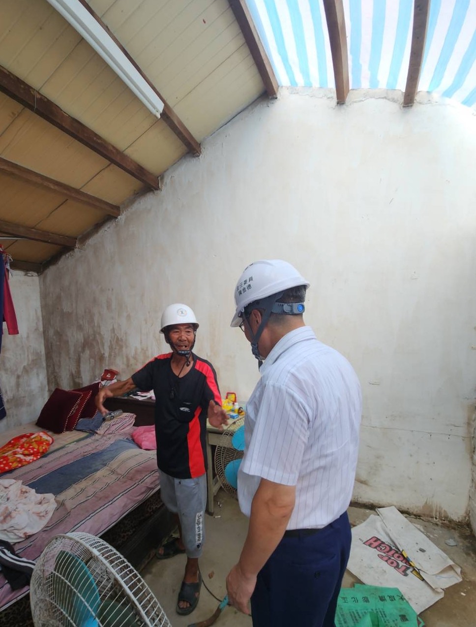 今年7月6日丹娜絲颱風挾帶強風豪雨,以罕見路徑侵襲南臺灣,造成許多民眾房舍受損嚴重。行政院為協助受災民眾加速重建家園,召集中央相關部會成立行政院雲嘉南災後復原前進指揮所(下稱前進指揮所),其中,由農業部農田水利署(下稱農水署)協助臺南市下營區受災民眾房舍修繕,農水署除以簡便程序媒合優良廠商幫一般民眾快速施工外,並引薦優質廠商用專業免費幫助弱勢災民修繕房舍。前進指揮所陳金德指揮官為瞭解各地房舍修繕進度,特於今(14)日下午偕同李怡德副指揮官及農業部黃昭欽次長等,前往臺南市下營區關心弱勢受災戶房舍修繕情形。
