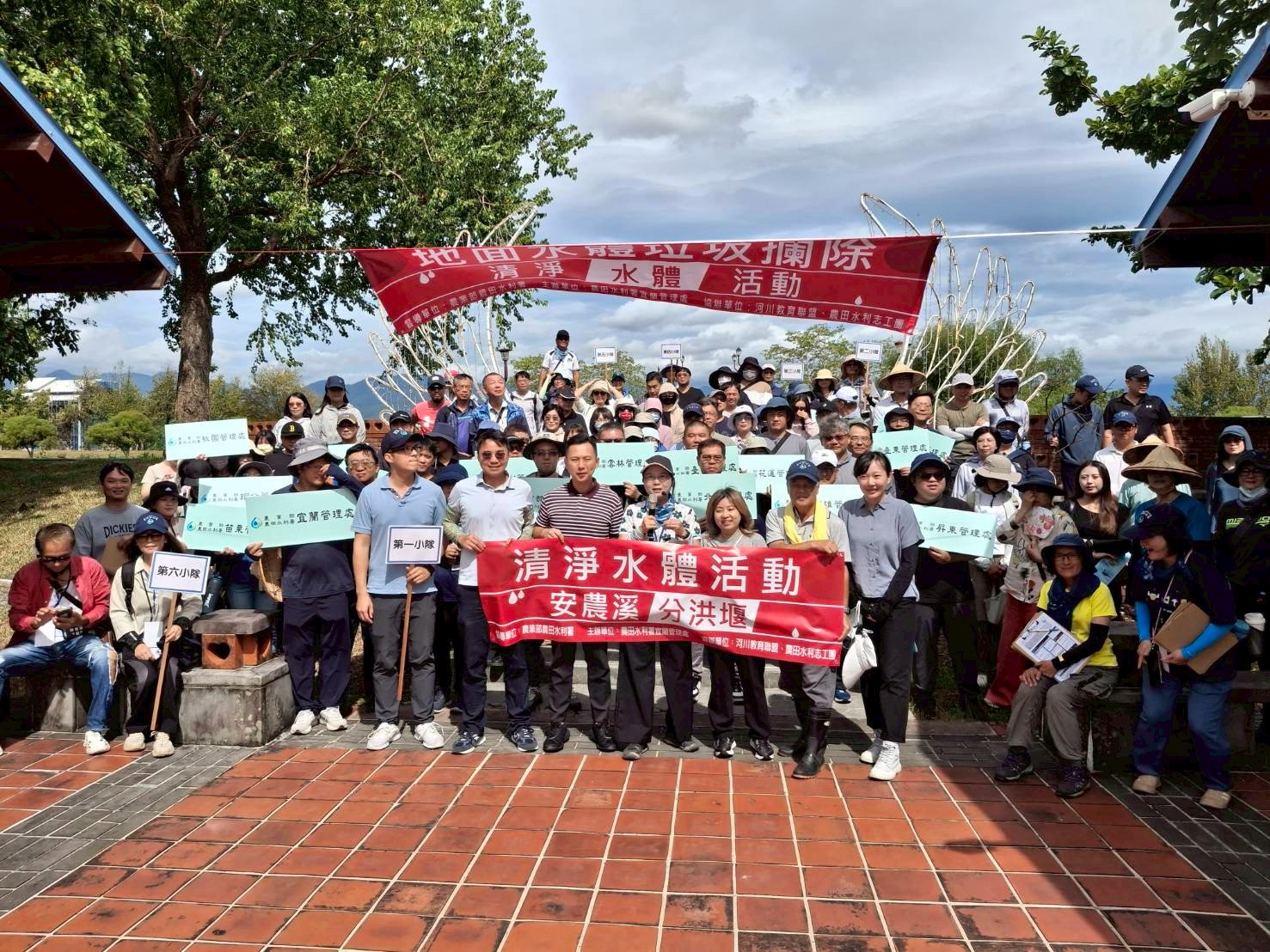為響應環境部向海致敬政策,本處 114 年 9 月 19 日於三星鄉安農溪分洪堰溪畔舉辦了一場大型淨灘活動,由農田水利署及所屬17個管理處水質夥伴同仁約計 120 人共同參與,透過農田水利志工團許珍玉團長帶領,活動全程依據國際淨灘(ICC)表件進行紀錄,不僅清理環境,更讓參與者深入認識安農溪場域及灌溉用水的重要性。
