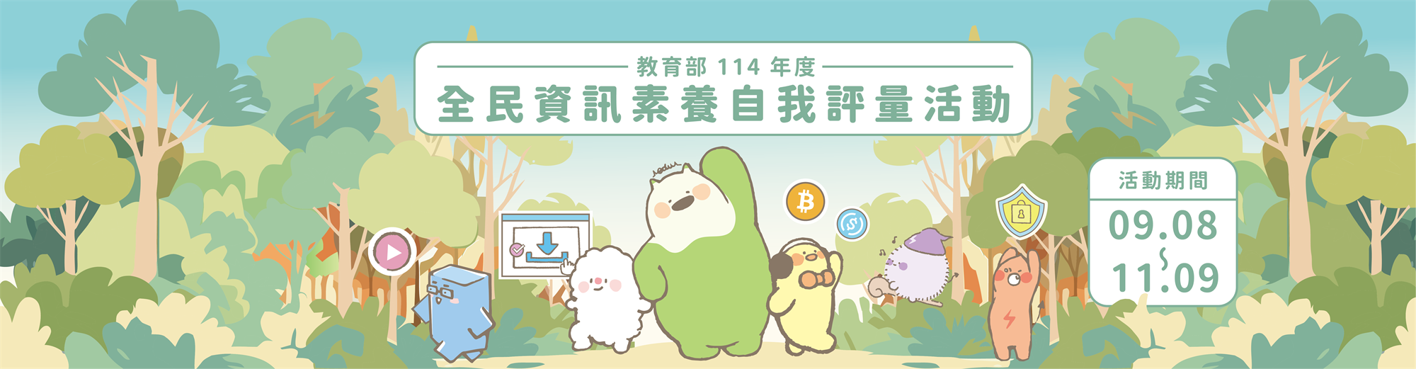 一、為瞭解全民數位素養與電腦防護能力,教育部自即日起至114年11月9日止舉辦「全民數位素養自我評量」活動,請大家於活動期間內踴躍上網參與檢測資訊素養認知程度,並有機會參與抽獎喔!!!